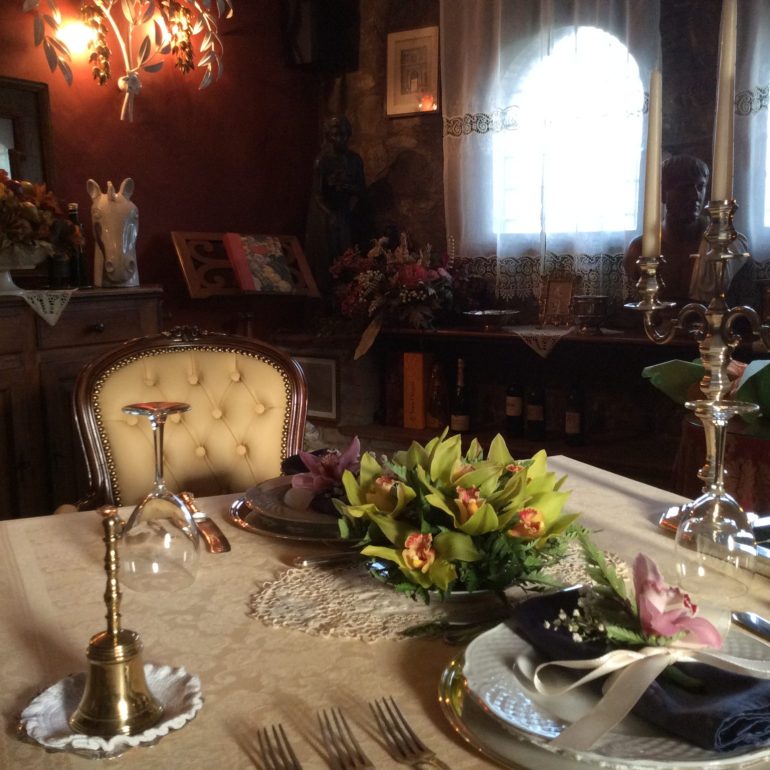 Tot aici există şi aranjamente florale, candelabre, două fotolii din piele roșie și un șemineu lângă care se află „Cartea Gândurilor”, care conține impresii ale cuplurilor care au luat masa la acest restaurant.