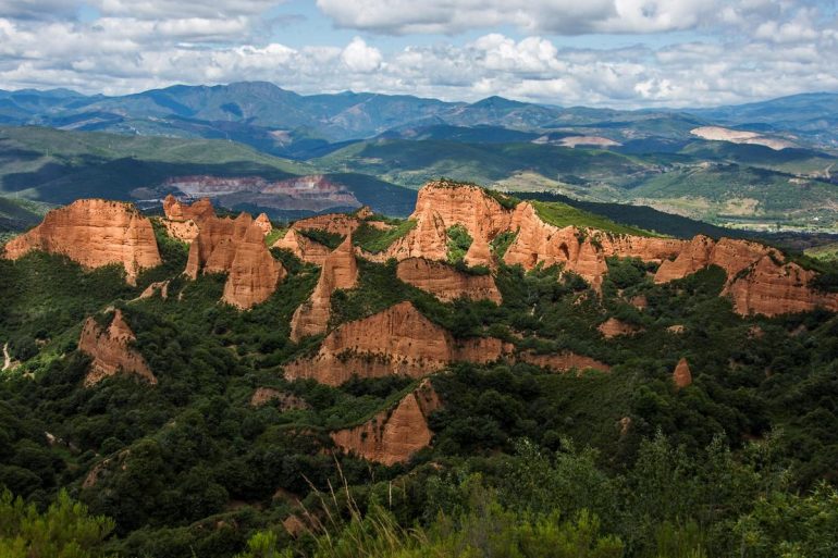 În dealurile accidentate din nord-vestul Spaniei, printre păduri de castani și stejari, se înalță un peisaj parcă dintr-o altă lume, cu stânci roșii zimțate, dealuri scobite și cavități labirintice. Acest teren suprarealist numit Las Médulas nu este opera eroziunii naturale, ci rezultatul unor lucrări complexe de inginerie hidraulică folosite de romani pentru a extrage aur din măruntaiele muntelui.